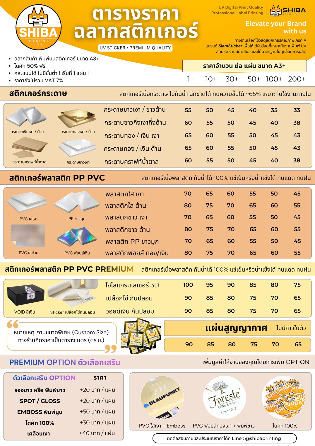 สติกเกอร์เนื้อพลาสติกทึบสีขาว ออกเงา กันน้ำได้ 100%